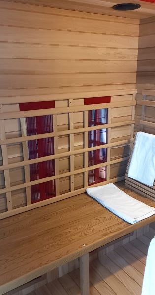 L'espace bien-être se compose d'un sauna à infrarouge dont les vertus sur la santé sont vantées. Le jacuzzi situé en terrasse surplombe la vallée, il peut accueillir 6