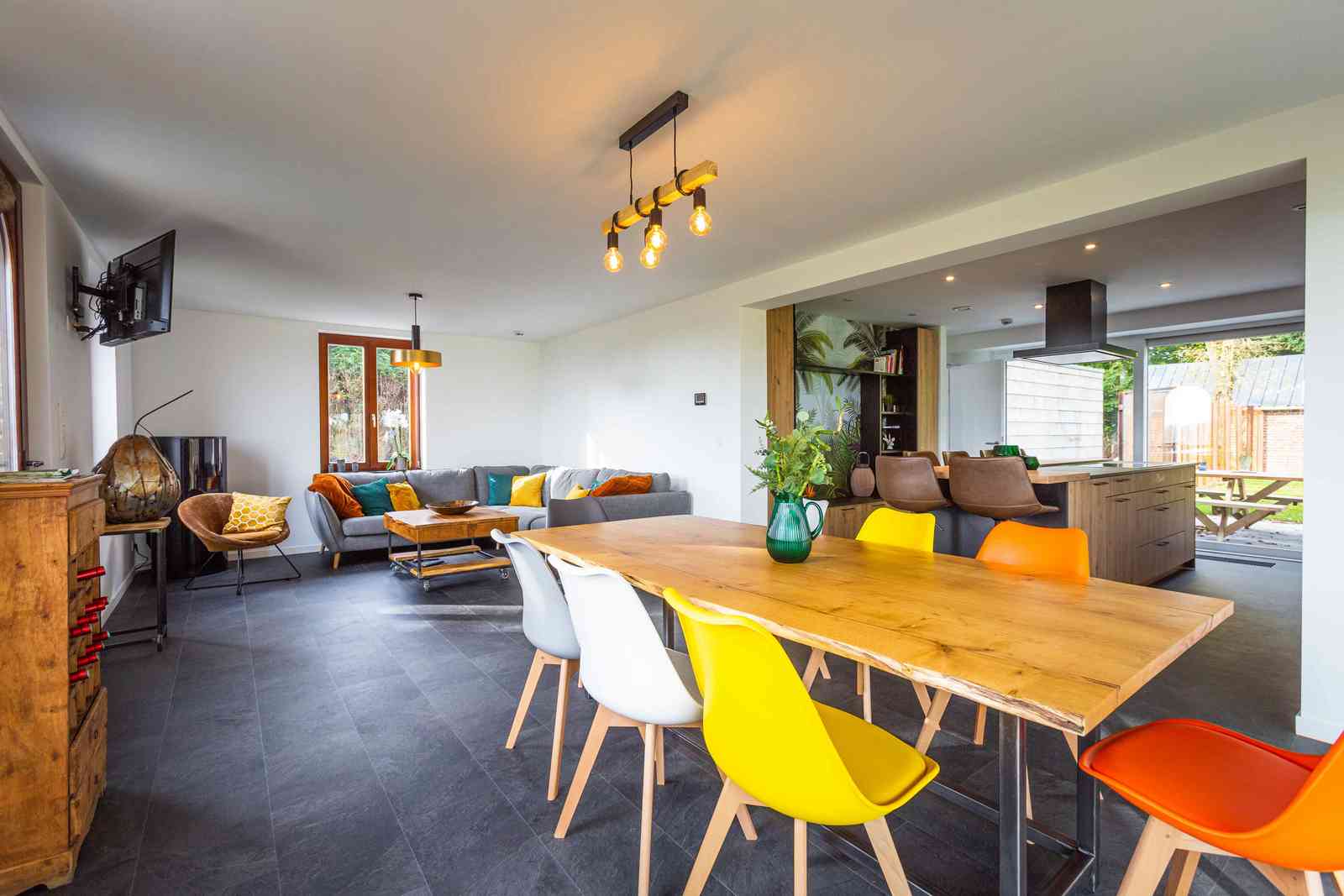 Réservez Le gîte dispose d'une magnifique cuisine contemporaine dont l'îlot central, ouvert sur la salle à manger et le salon, confère au lieu le charme et convivialité que les hôtes ont voulu apporter à cet espace.