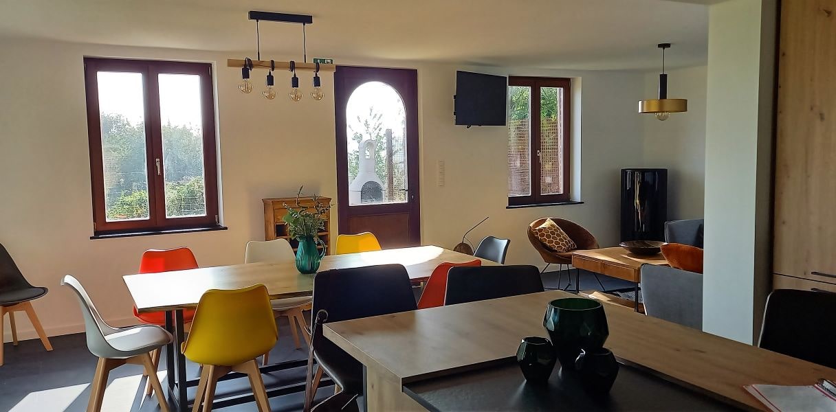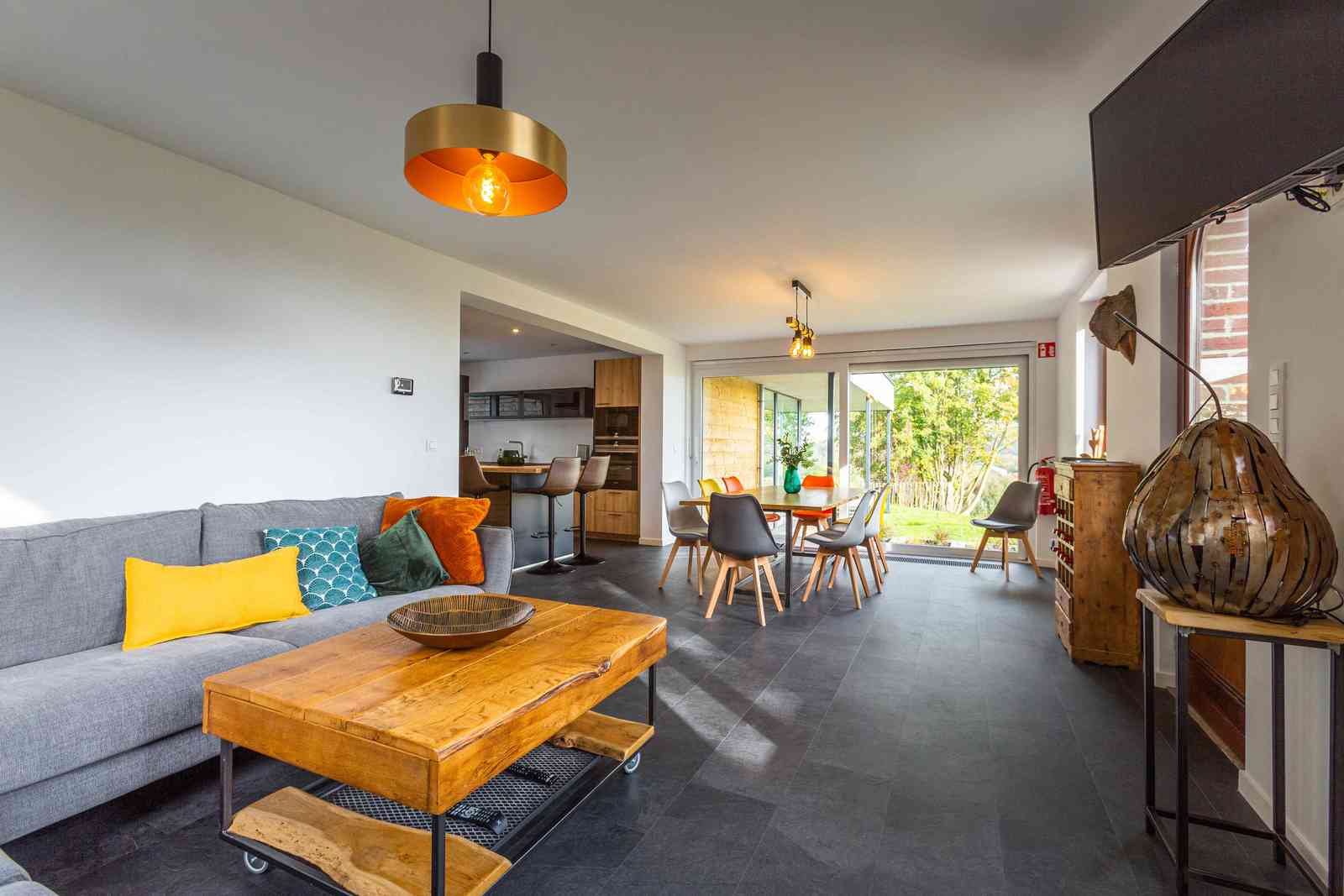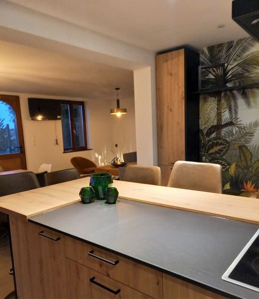 BOOK NOW The cottage has a magnificent contemporary kitchen whose central island, open to the dining room and the living room, gives the place the charm and conviviality that the hosts wanted to bring to this space.